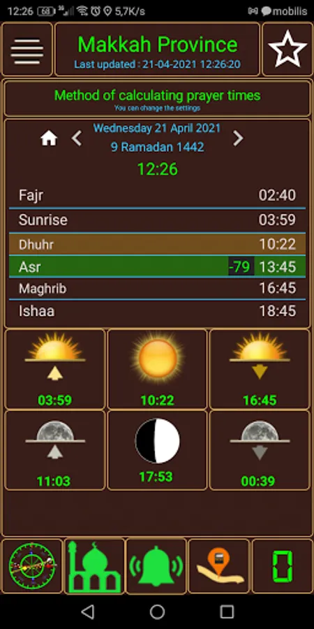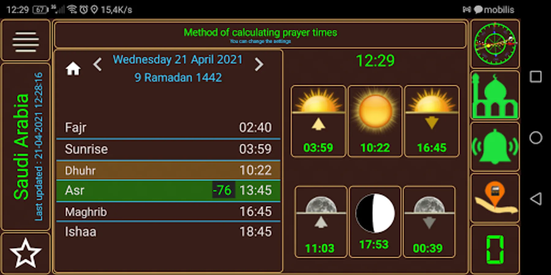- Times of sunrise and sunset and the disappearance of the sun and the moon.