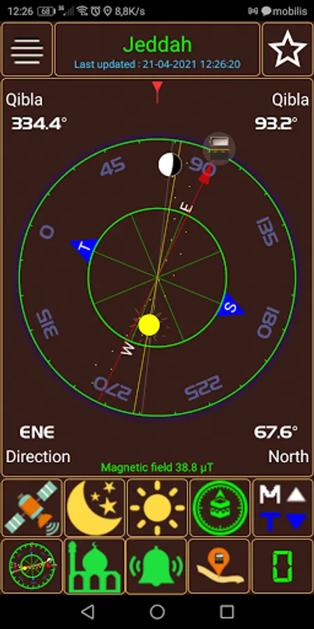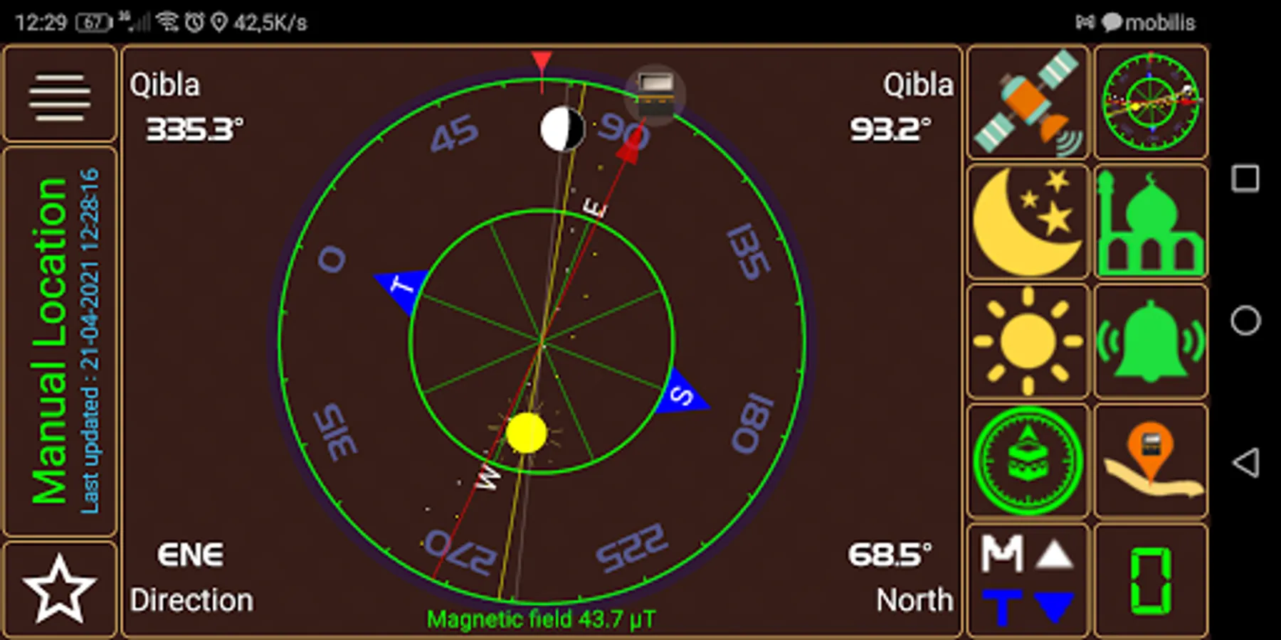 We calculate the Qibla direction with high accuracy by taking into consideration the value of the magnetic north deviation from the geographical (real) north.