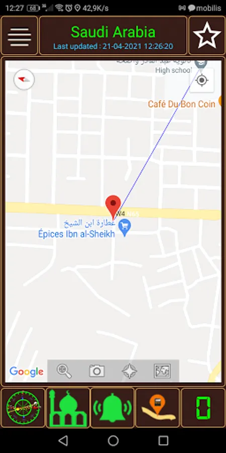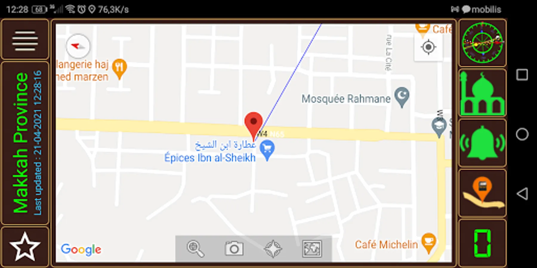 As well as through the map thanks to the display of the Kaaba site and your site and link them with a line.