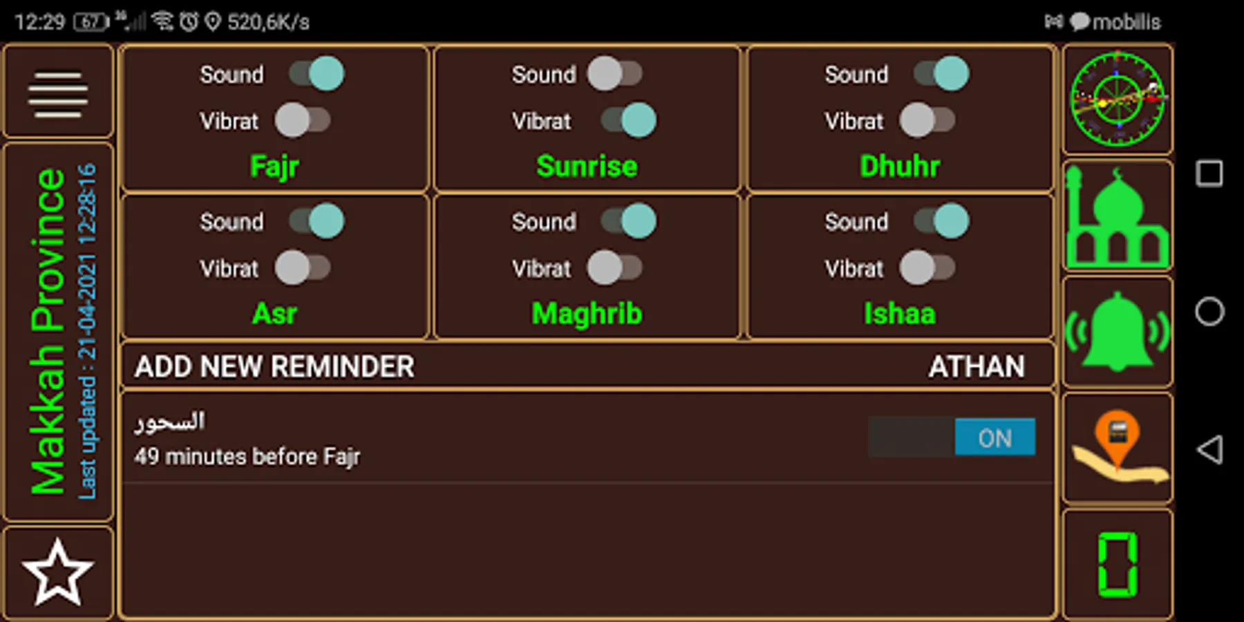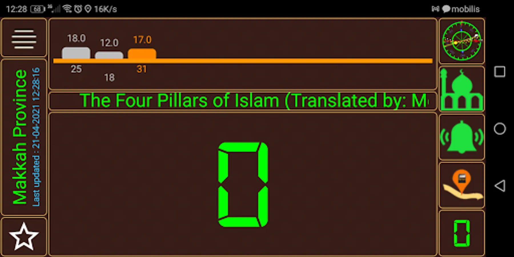 If your phone does not have a compass feel, you can know the Qiblah direction from the sun or moon position.