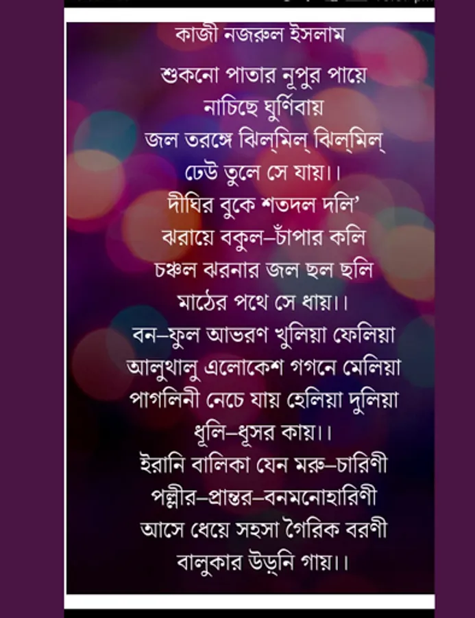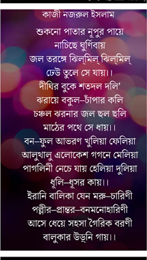 Bangla Kobita App (বাংলা কবিতা অ্যাপ) is a mobile application that can be used by its readers to read poems of Bangla literature.