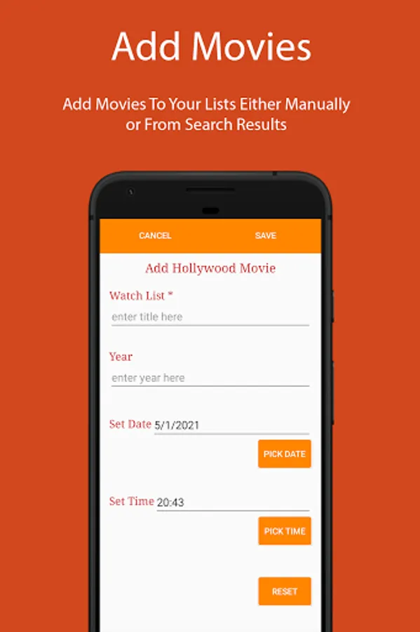 The app can be operated hassle free without creating any sort of cloud id. Titles can be added to any list manually and directly from online search results. Internet is required to search for movies and tv shows online and watch their trailers in YouTube. Titles can be added to any of these lists by first selecting the category and then the list.