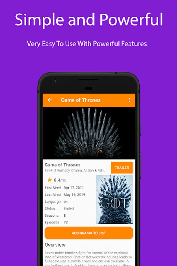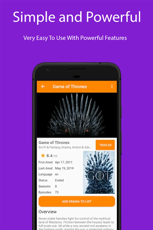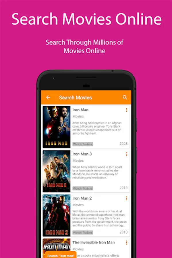 Watch the latest trailers, discover what to watch, browse through currently playing, popular, upcoming, top rated and trending movies and tv titles. Search for millions of movies and tv series easily. Moreover, high resolution poster and backdrop is displayed with search results. Other data includes genres, rating, release, run time, language, status, budget, revenue.