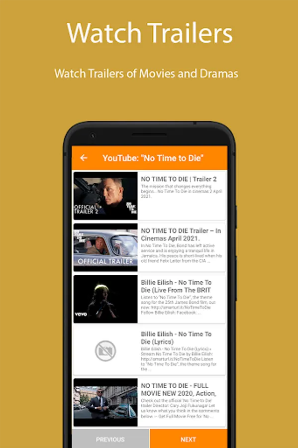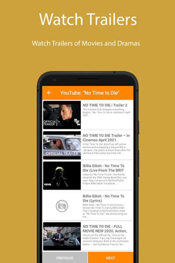 Once the lists are populated with titles; more functionalities become available to the user which are hidden when the lists are empty. It is possible to search for any title online and search for videos in YouTube directly. All this is performed within the app without jumping into any other app which makes it so convenient and compelling for the user.