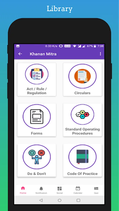 This app will be an effective, positive and interactive medium of spreading safety awareness by educative audio-visual clips, alerts, message etc, this will connect grass root level worker to the Sr Management on a seamless manner. its designed to initially serve the fundamental purpose of safety education, knowledge dissemination etc. it will serve as a storehouse of vital guidelines on mining. Frequent interaction by mean of Quiz, Themes based monthly celebration, competition over digital platform among the different hierarchy of the organization.