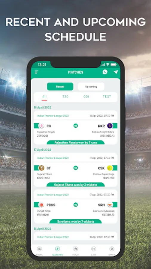 Here you will get access to Instantaneous Live updates of IPL 2022, International matches, domestic matches and leagues and county cricket.