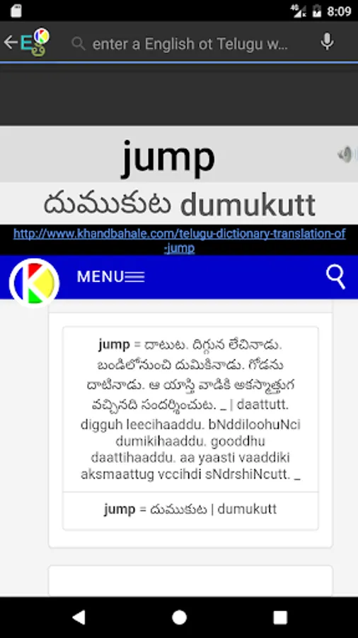 English<>Telugu Bilingual Talking Dictionary : Translate any English word to Telugu & Telugu to English by KHANDBAHALE.COM