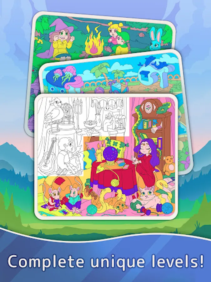This offline puzzle game is a free color game for both kids and adults. You will enjoy fun paintings created by professional illustrators and your inner artist will be glad to have ways to express herself!