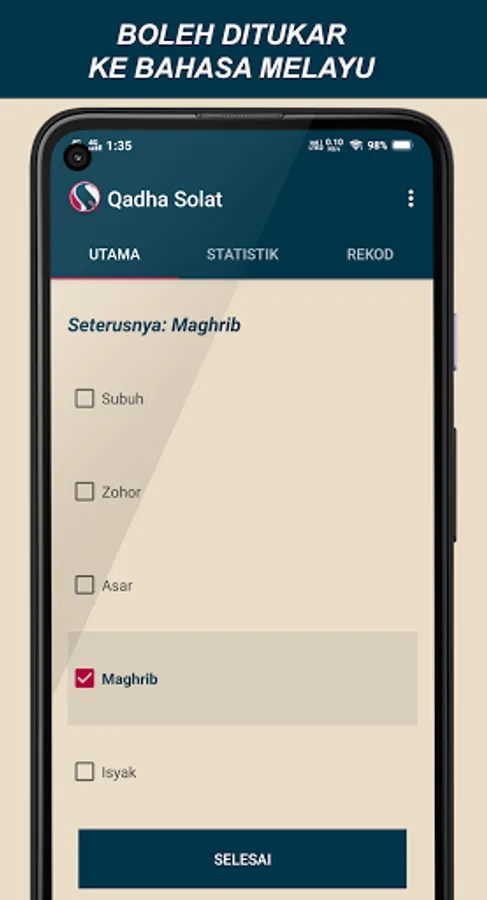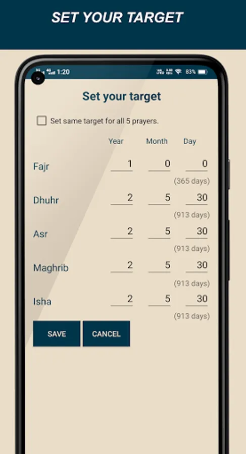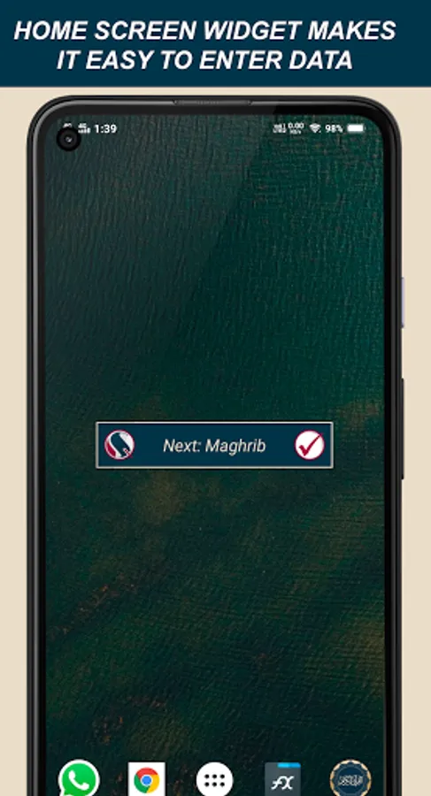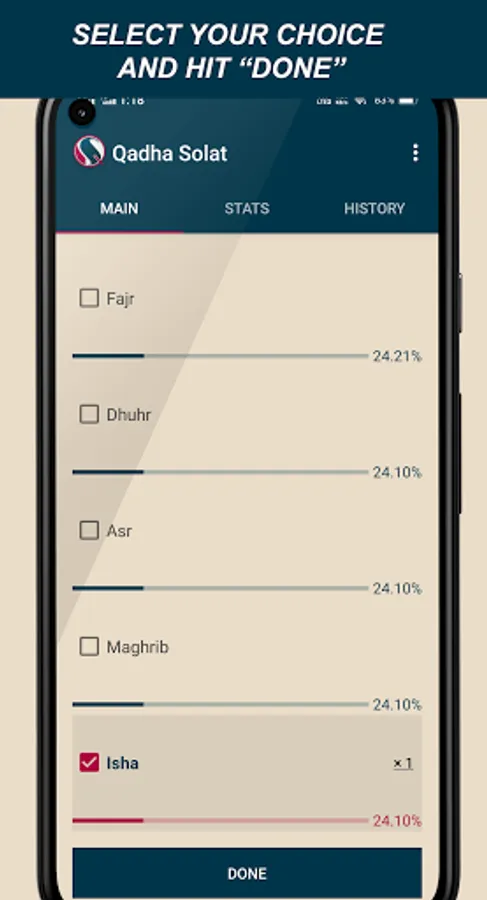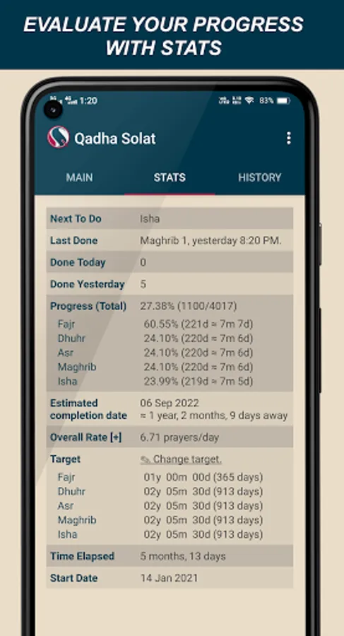 This app is for those who want to qadha the prayers they have missed. Set your target of how much you want to qadha, and track your progress with this app. It also shows you the stats of your progress like percentage completed and the estimated date of completion. The app's home screen widget allows you to enter your progress without the need to launch the app.