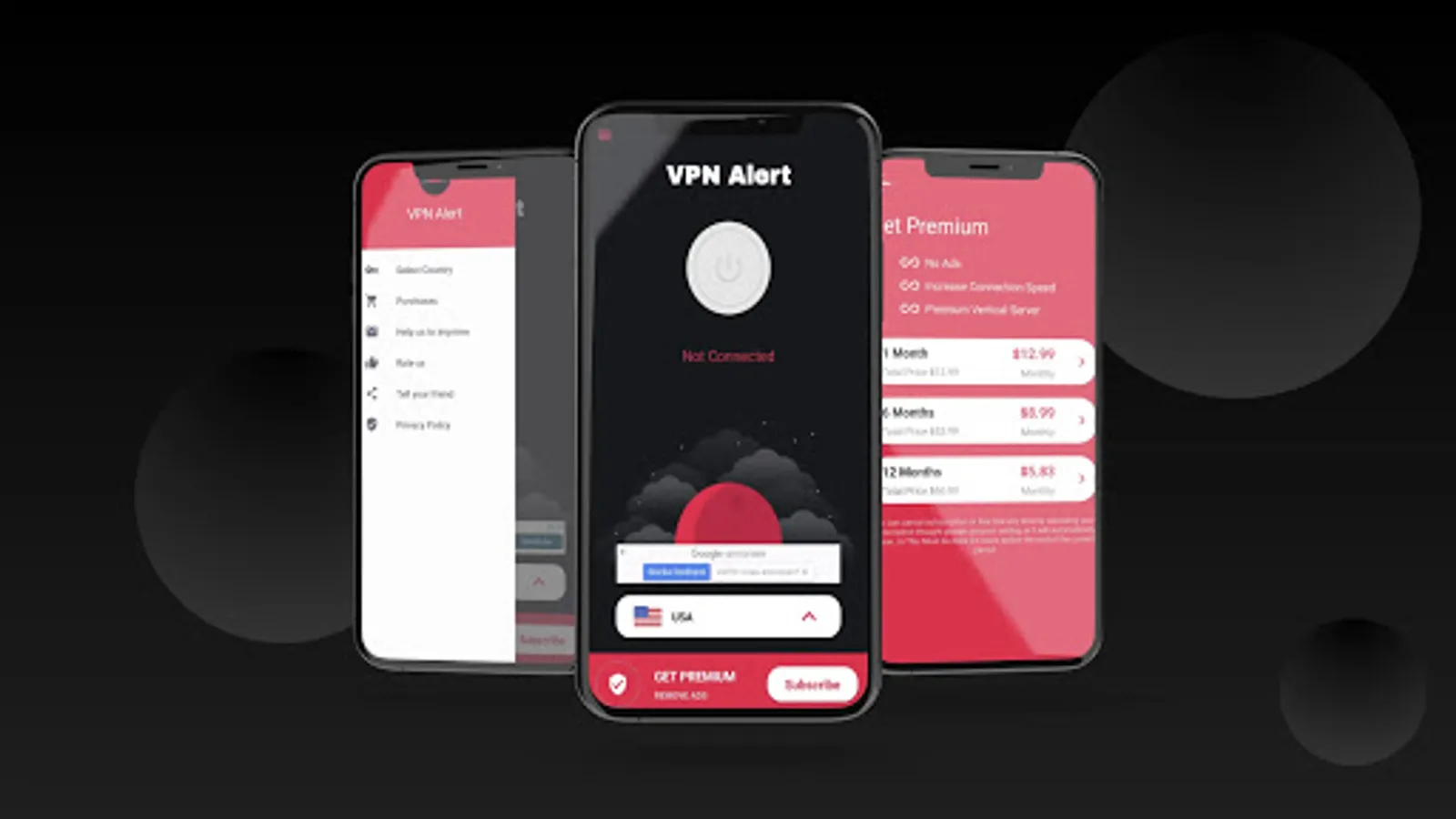 VPN Alert is mostly used for streaming videos In Youtube, Netflix, Disney+ and watching your favourite series. You can play your favourite game in your mobile with connection to our high speed vpn servers for free. Unlock more countries and get even more greater speed by becoming a Premium memember of VPN Alert. You can choose between 3 deffrent subscription: 1 month, 6 months or 12 months.