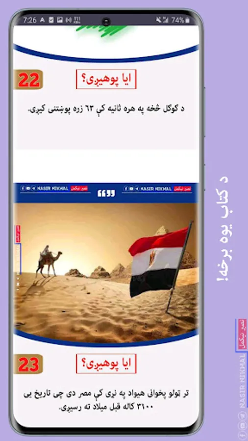 په دي افلیکیشن کی تاسی جالب معلومات ویلای سی! لکه: نړی، جغرافیه، تاریخ، عجايب ځايونه، عجایب مخلوقات، عجایبی پيښي او داسی نور...
