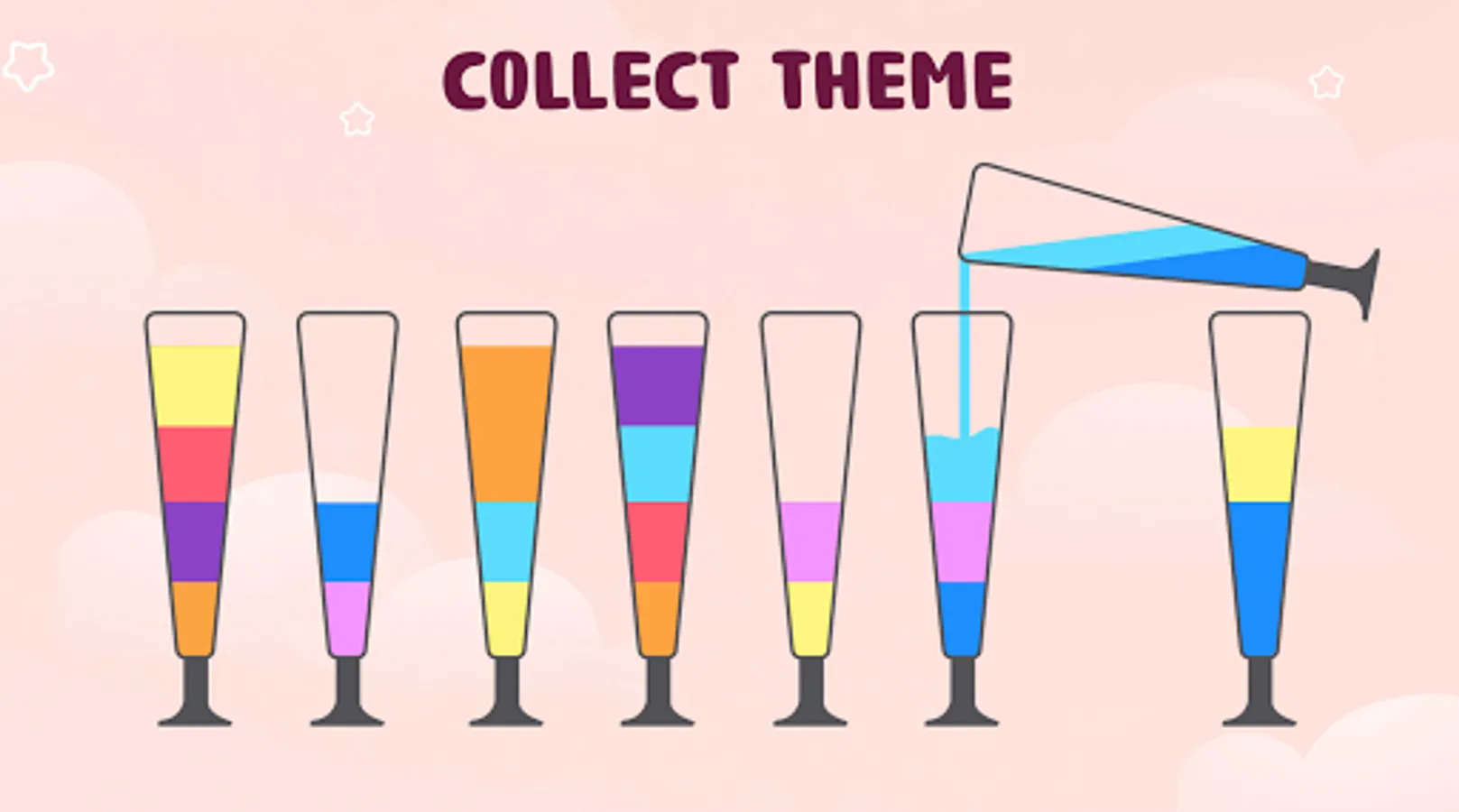 Puzzle color and then pour water then choose any glass to pour water into another glass.