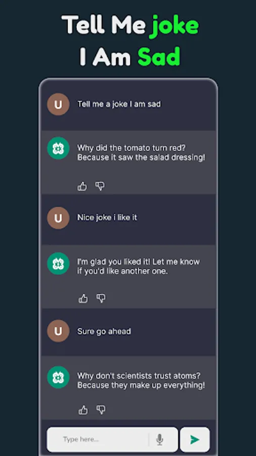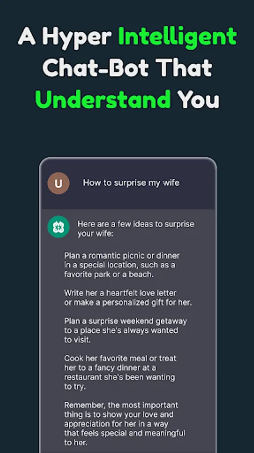 Cleverbot - Chat With AI GPT is an AI supported App that allow user to chat with AI GPT. Talk to it about anything - be it the demanding jobs of future, or ideas about how to surprise your friends and family or just ask it to write a poem or tell you a story. Chat with AI GPT for an adaptive and entertaining conversation partner. If you’re willing to have some fun or want to get something off your chest, our Chatbot will be there to serve your needs.