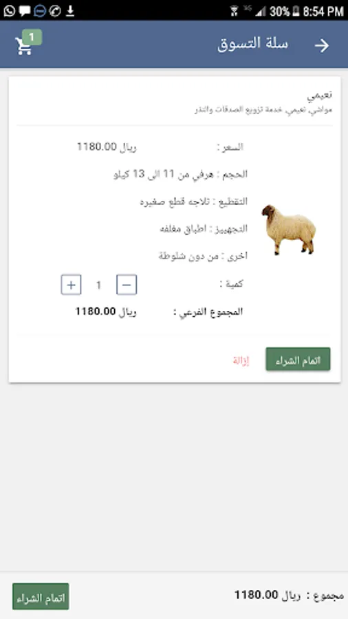 An application that displays all classes of livestock at competitive prices where the user selects any type of livestock and adds it to the shopping cart. The user can define the quantity and how to cut and equip livestock, pay cash or transfer the company accounts, as the method of transfer will not be through the application but rather transfer the amount from the bank to our accounts and enter The hawala number in our application and waiting for its sacrifice, we will deliver it to the neighborhood and the street to the user's address. Also, there is honesty and vow service at a lower price. Our goal is your satisfaction