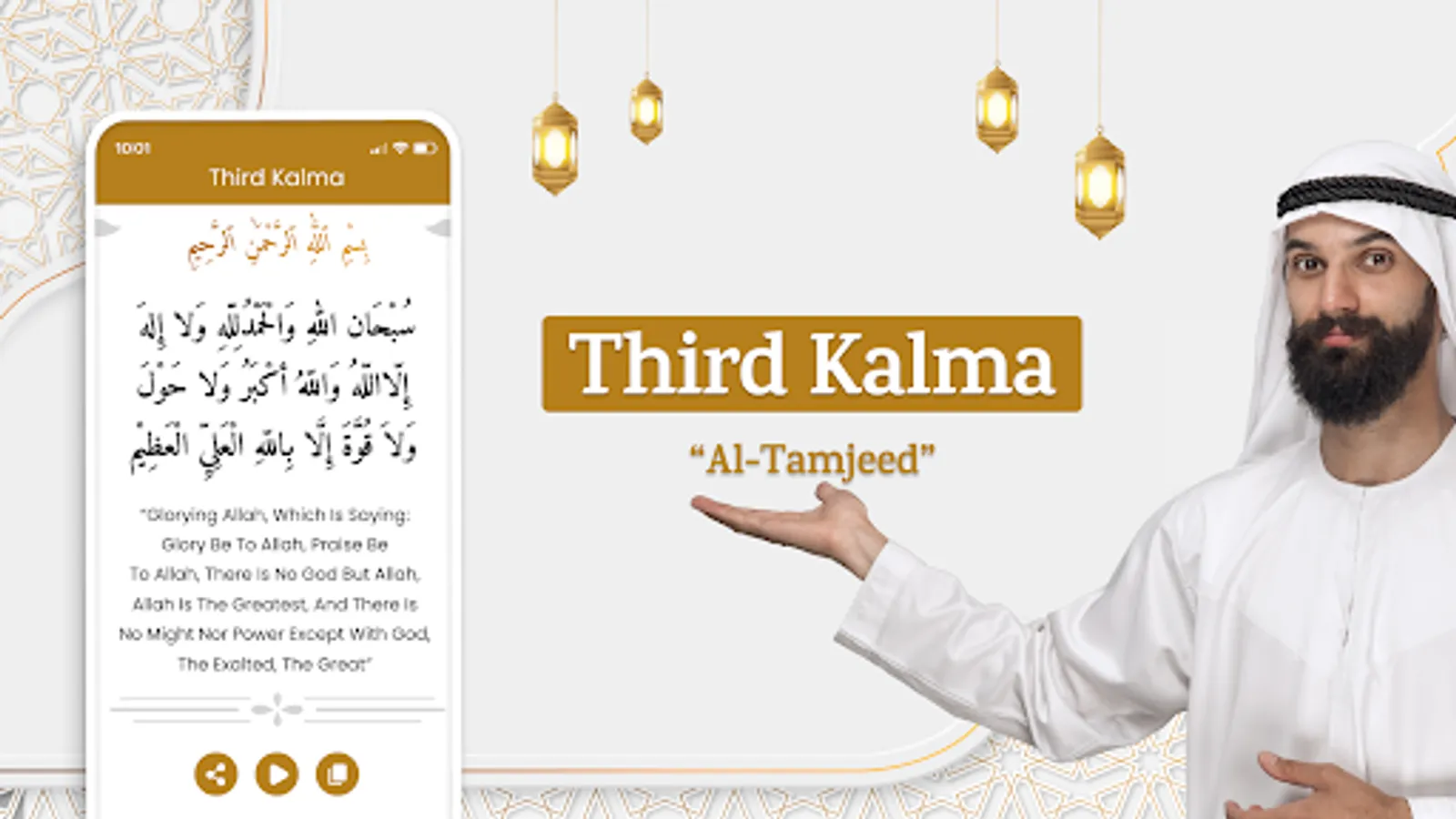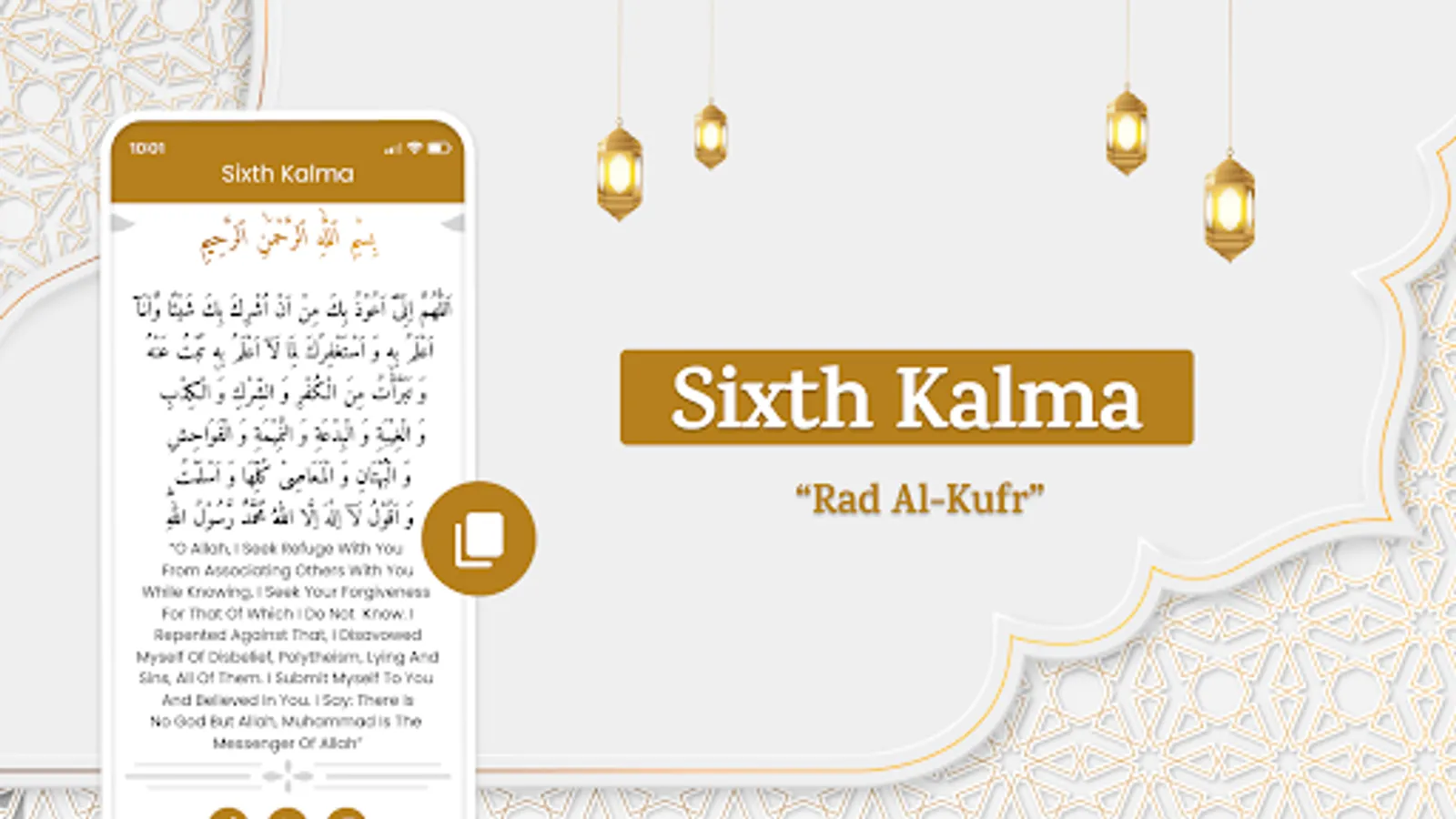 The Sixth Kalima & Rejecting disbelief is a Muslim declaration of faith in the oneness of Allah and the prophethood of Muhammad. It is also known as the Kalima Tamjeed and is recited in praise of Allah's glory and majesty as well as Islamic belief in Allah.