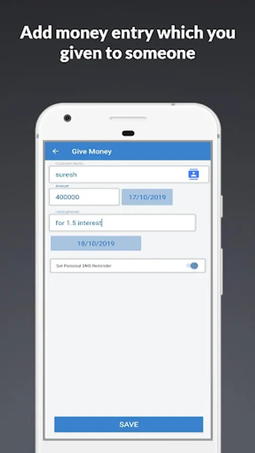 you just need to add entry when you give money and when you need to get back and rest work will be done by app. app will remind you client on time and also remind you that you have to get back your money from this person.