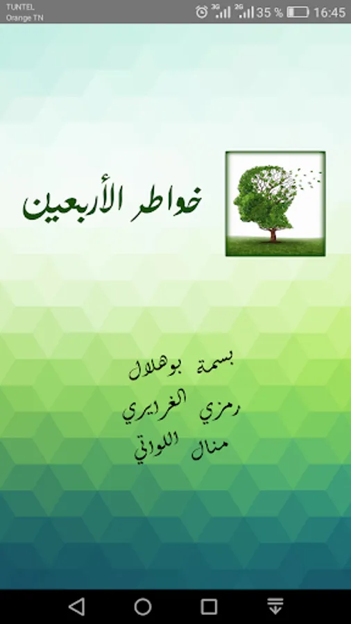 Dear reader before you start to read the book .. Choose a quiet place .. Break away from your outside world .. Breathe deeply .. And set off in the world of the thoughts of the forty ..