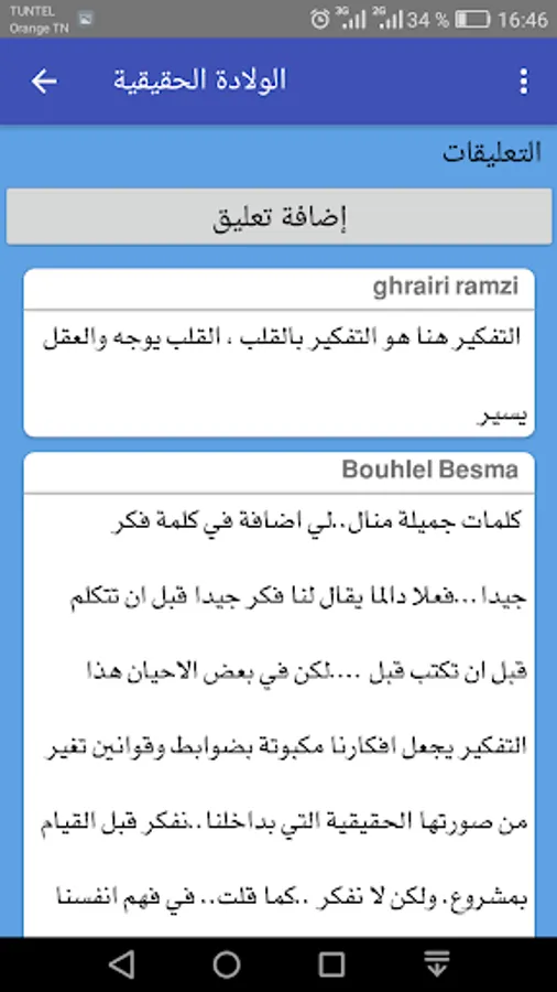 The application is an interactive e-book that allows the reader to express his opinion and submit his comments in the form of comments that are added automatically by signing up for the application.