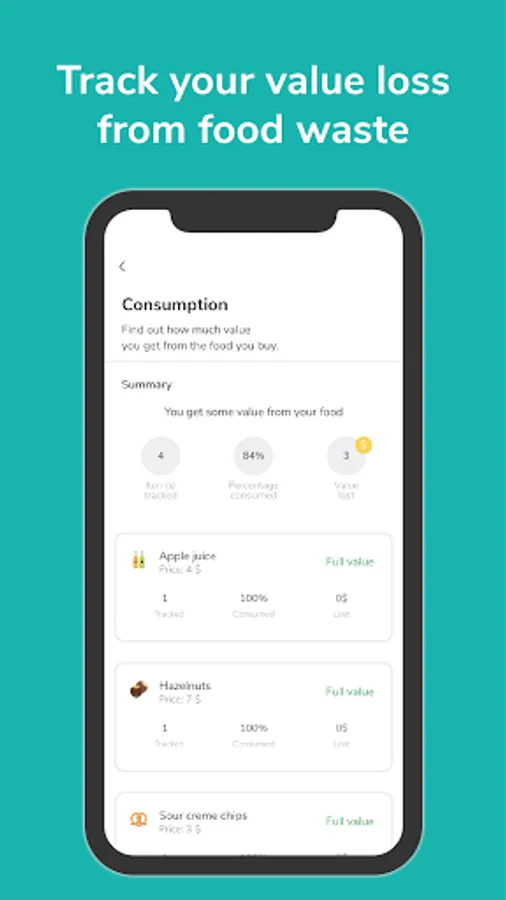 • Great list design to help you get an overview of your food