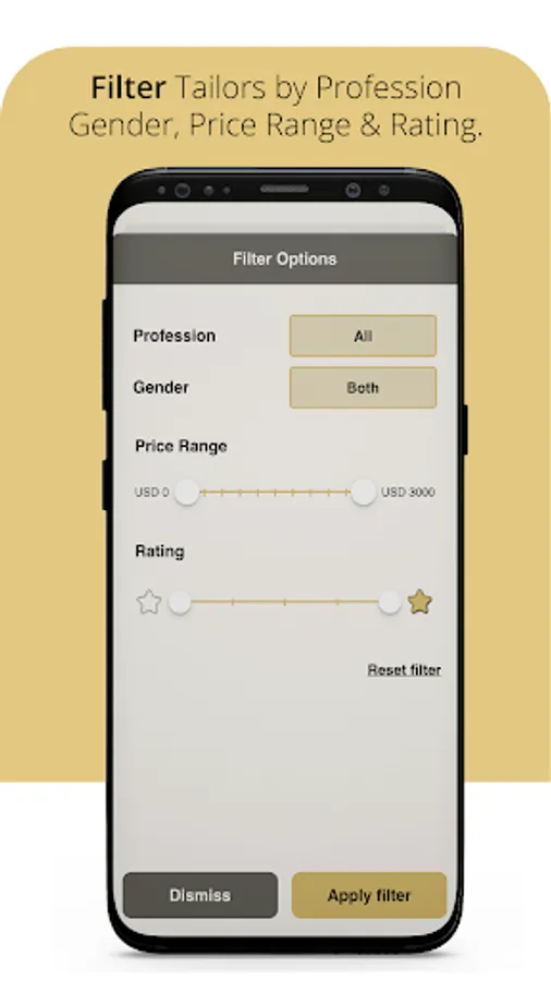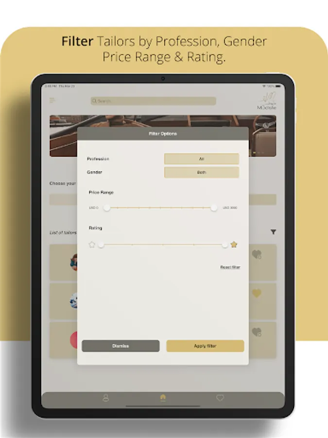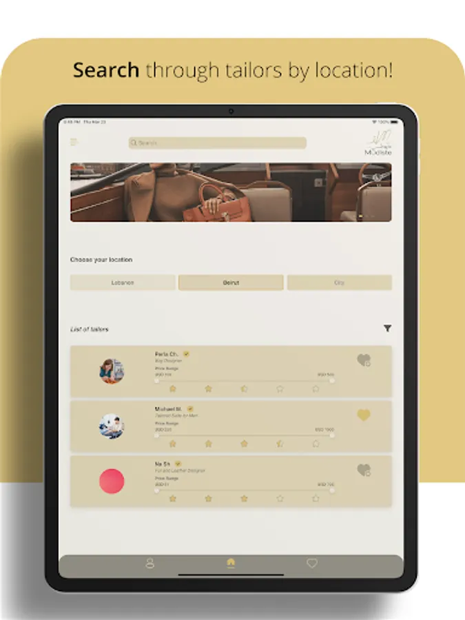 o Search for specific fashion design or tailoring services based on: