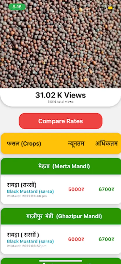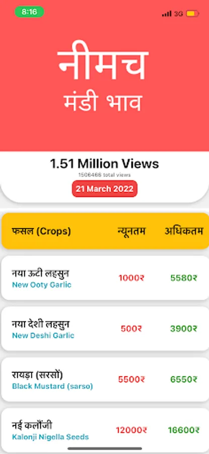 In this app, you can know the information of the crops coming in the major krishi upaj mandi and market and you can also see the analysis of the crop of the last few days with the help of graph. Also provide some good information which if you like it then you can use them according to your convenience. All information on this app is published in good faith and for general information purpose only. We do not guarantee 100% of all information provided