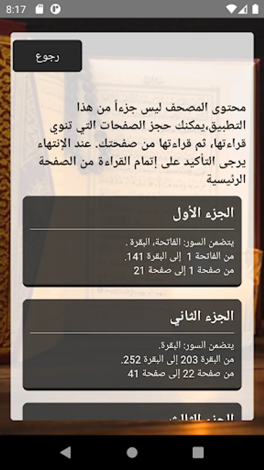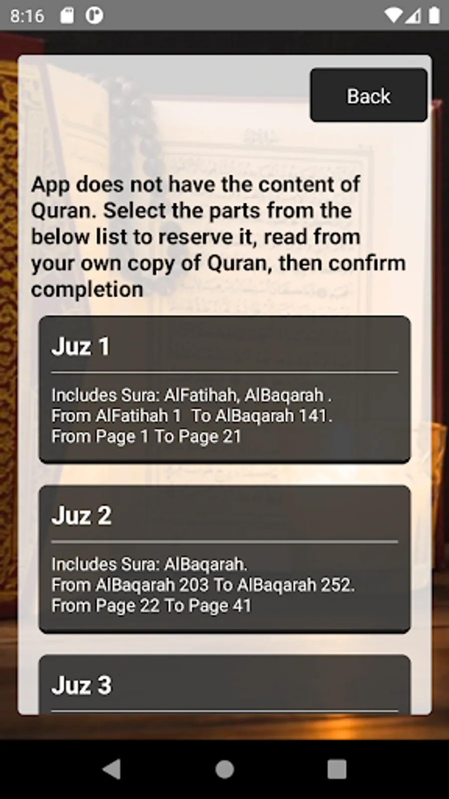 This version was created in few days only to catch the Holy month of Ramadan. Our promise is to have a new version soon that has statistics for your reading, statistics for over all reading, enhancements on design, enhancement on the App in general.