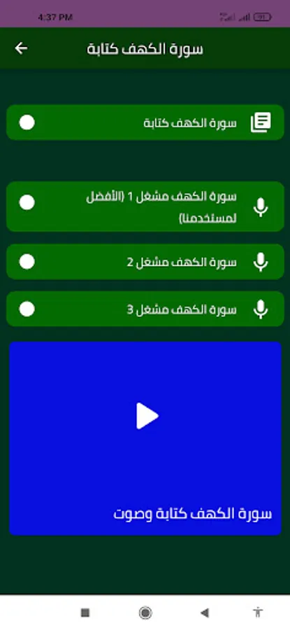 يمكنك التنقل بين أزرار تطبيق سورة الكهف كتابة بسهولة
