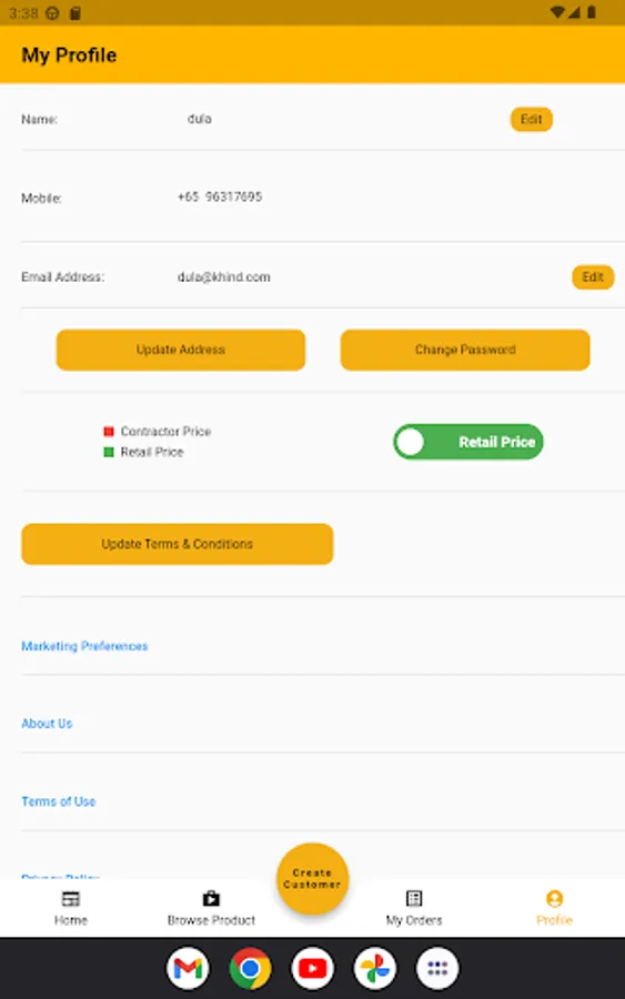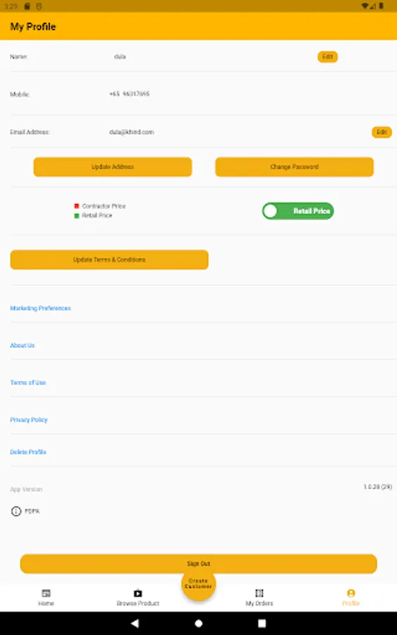 - The app supports contractor and consumer pricing hierarchy