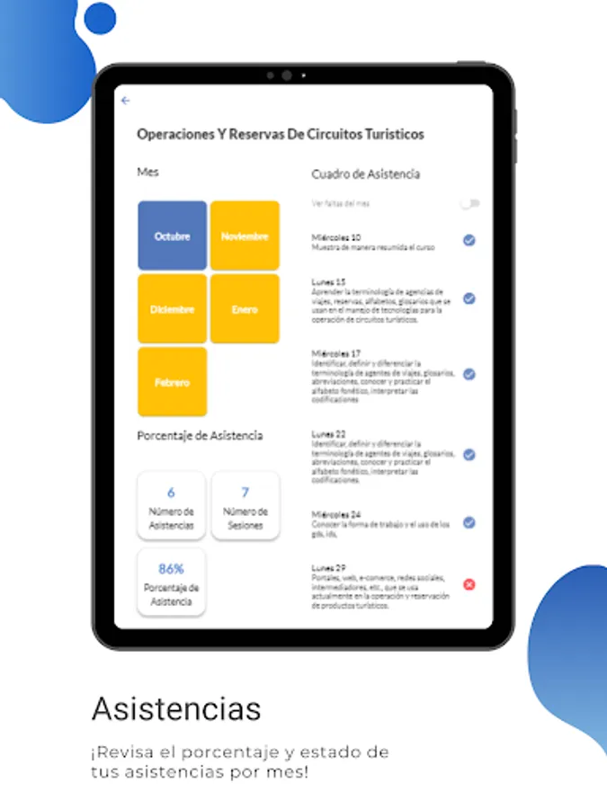 - Visualize the information of your courses and progress of sessions.