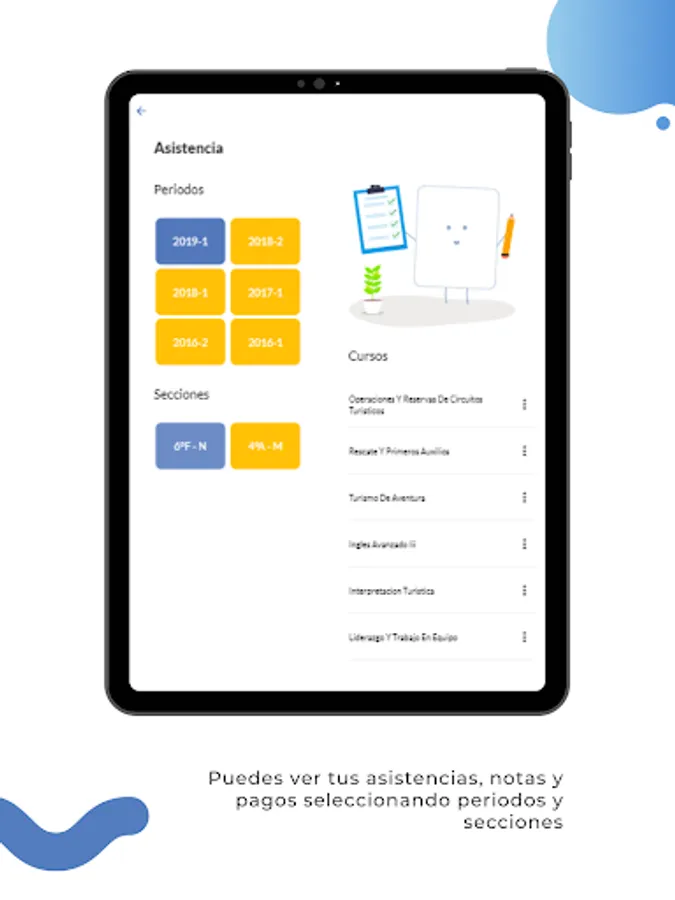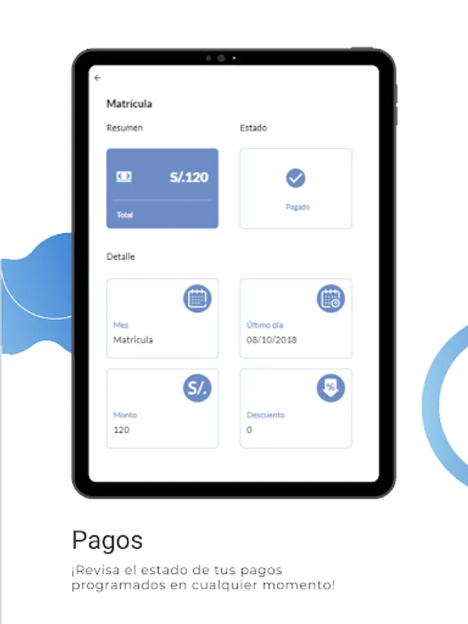 The mobile application for students of the Khipu Institute allows its students to access the data of their intranet academic information quickly and easily through their phones, giving them the possibility of: