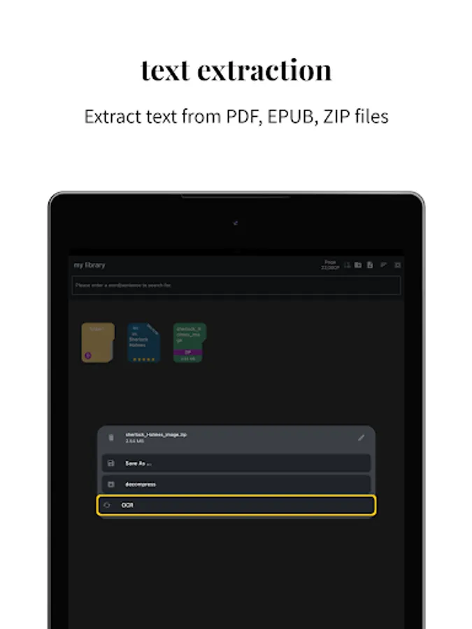 It has a built-in function to convert image, epub, and PDF document files to text documents.