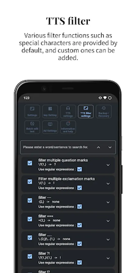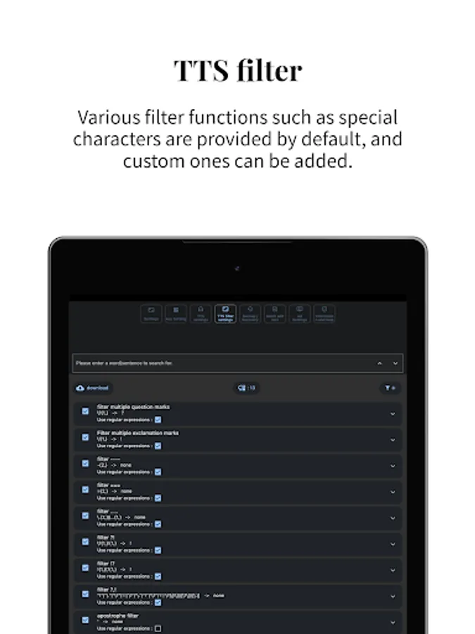 - TTS filter function (provides dozens of basic filters for general users to use easily)