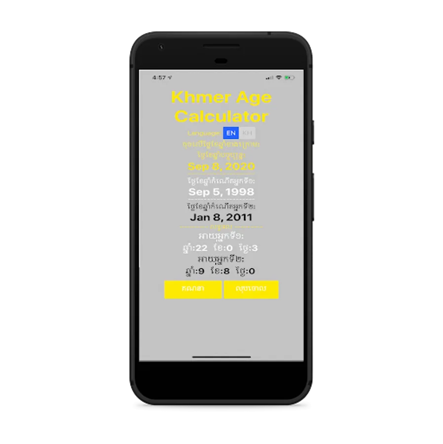 Khmer Age Calculator is fast and simple way can calculate 2 persons in same time.
