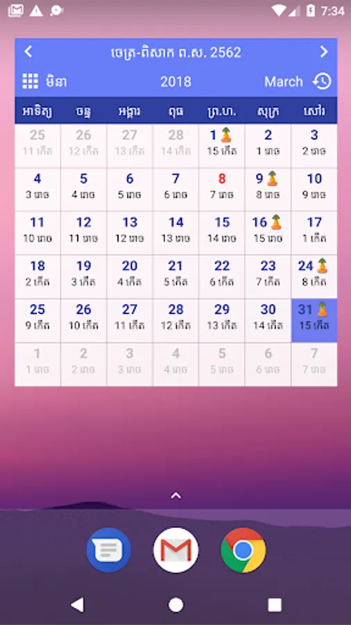 Khmer Lunar Calendar Pro offer standard lunar calendar and holiday information for cambodian people:
