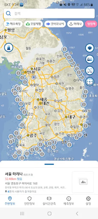 - Beach, tidal flat experience, tidal rock fishing, marina