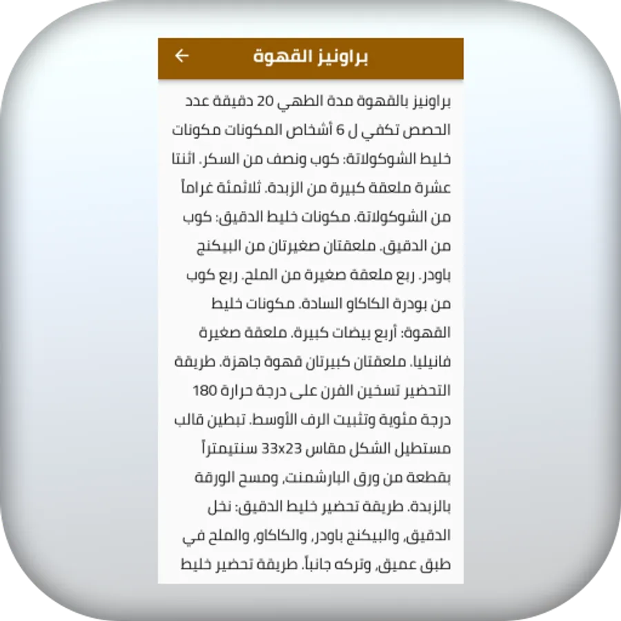 The book and coffee application also contains the method of making some sweets that are served with coffee, such as the method of making coffee brownies and the method of preparing and making chocolate cake with coffee cream
