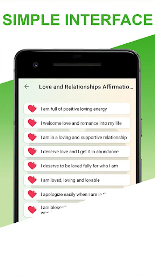 Our app features a simple and intuitive interface that makes it easy to find the affirmations that resonate with you most. With daily affirmation reminders, you can stay on track with your affirmations throughout the day and keep your mind focused on positivity and success.
