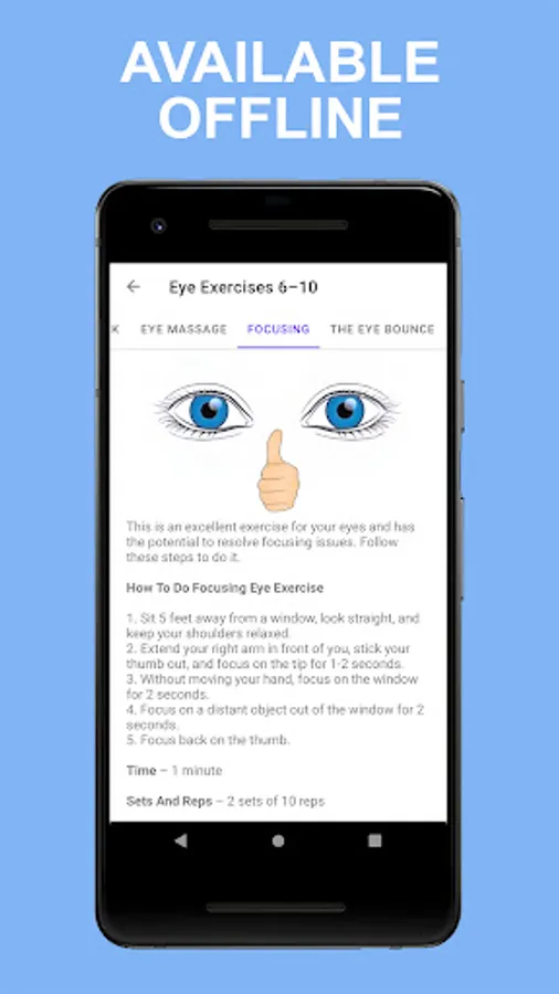 Eye Exercise: Improve Eyesight mobile app - your personal vision therapy and eye fitness coach. Whether you're looking to improve your eyesight, reduce eyestrain or alleviate eye discomfort, this app has got you covered.