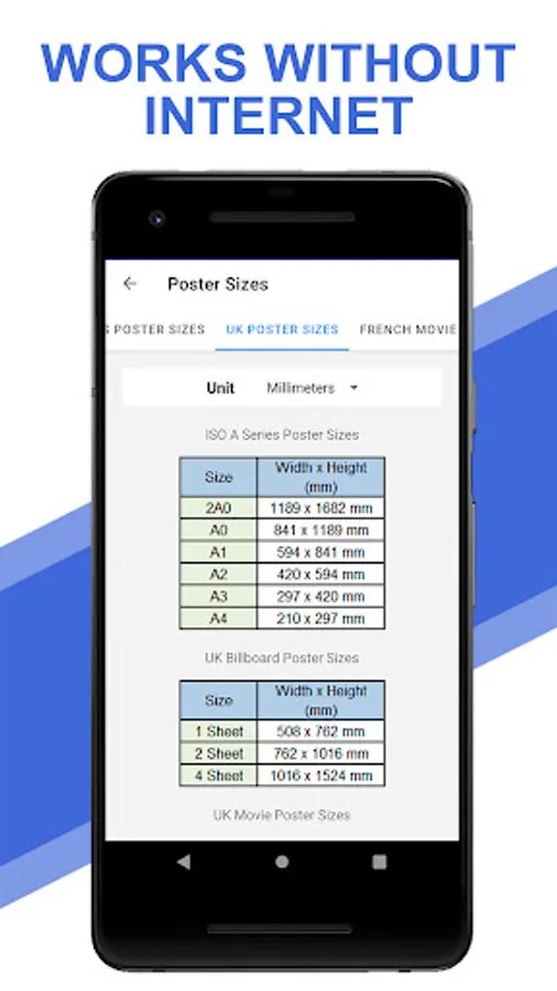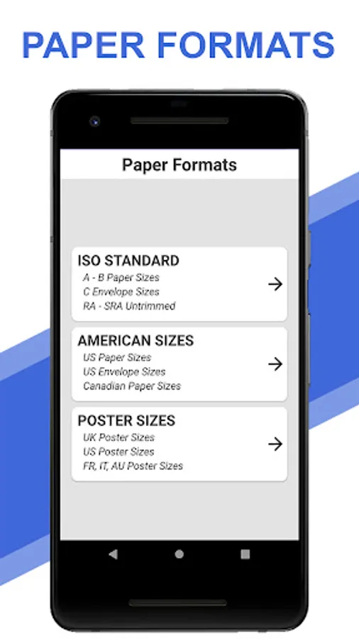 For those who need to print documents, the app also includes printer paper sizes, including the dimensions of standard printer paper. And if you're working with digital documents, you can even find the A4 paper size in pixels.