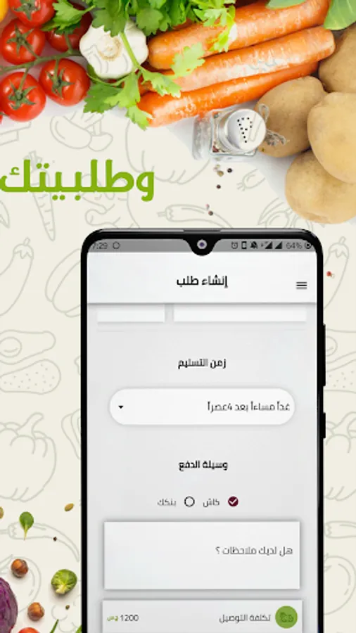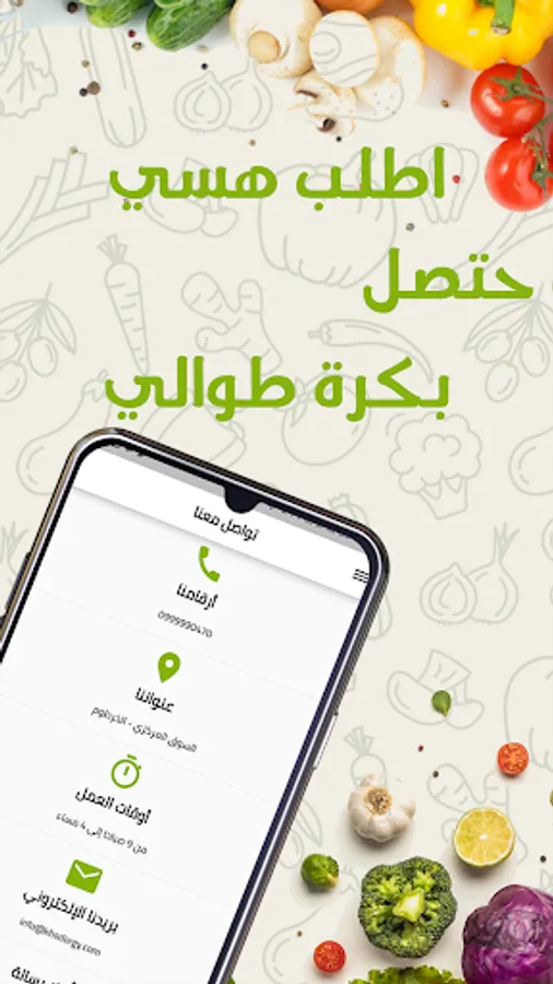 نقوم بتوصيل المنتجات (خضروات - فواكه - توابل) طازجة إلى عتبة داركم بنفس سعر السوق المركزي وأقل، مما يوفر لك المال والوقت والمجهود. اطلب اليوم وابقى بصحة جيدة.