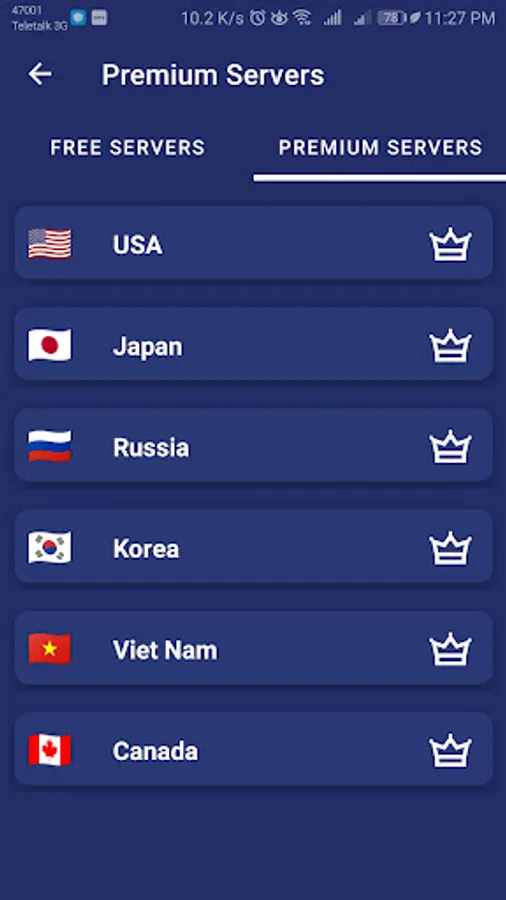 We have added some country's VPN network's and plan to expand to more country soon. Most of servers are free to use, you can click the Server name and change server as any times as you want.