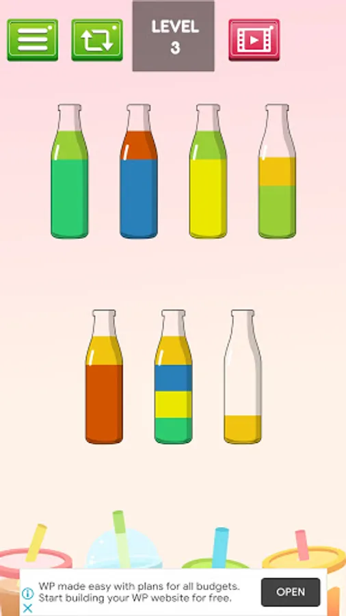 • The rule is that you can only pour the water if it is linked with same color and there’re enough space on the glass.