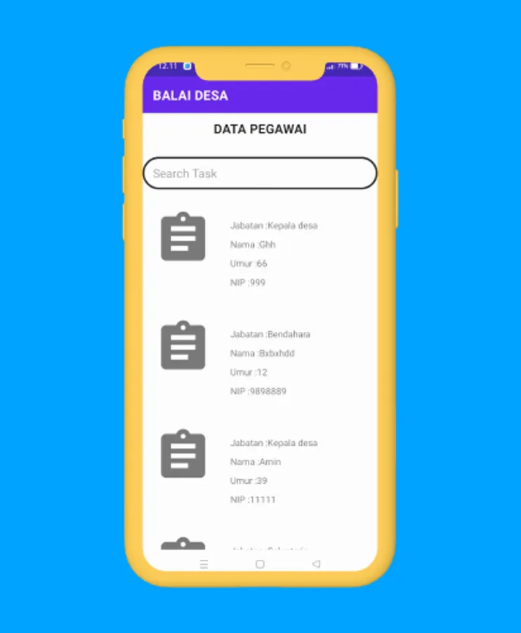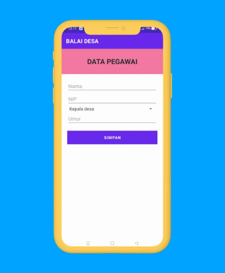The Village Hall application is an application that is used to fill in employee biodata in a staffing structure at the village hall. In addition, this application can also be used to fill in data in other structures.