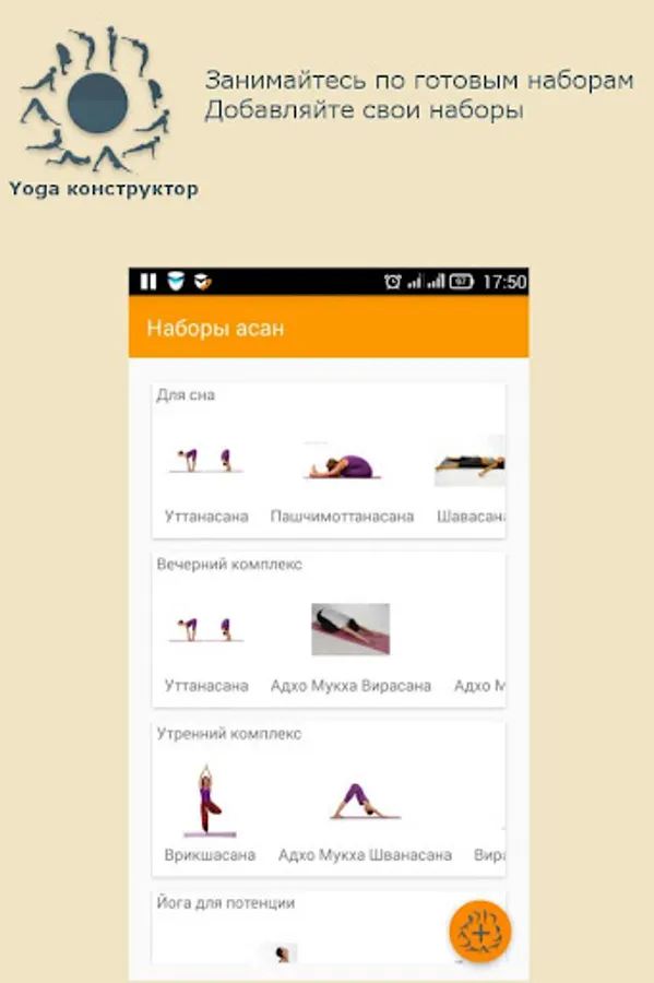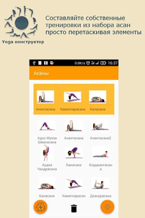 In this application, you can make yourself a plan of yoga asanas that you like best.