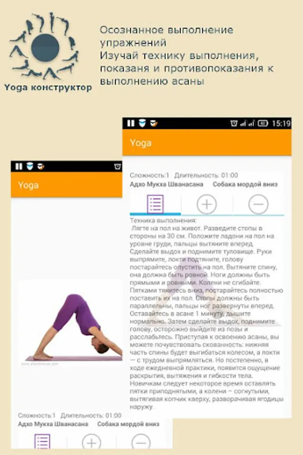 Yoga designer - a directory of asanas (postures) of yoga with the description in Russian and constructor classes.