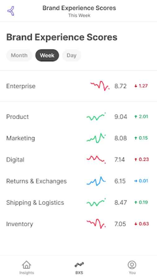 - Brand Experience Scores take center-stage with interactive performance visualizations, for both the Enterprise and individual business units.