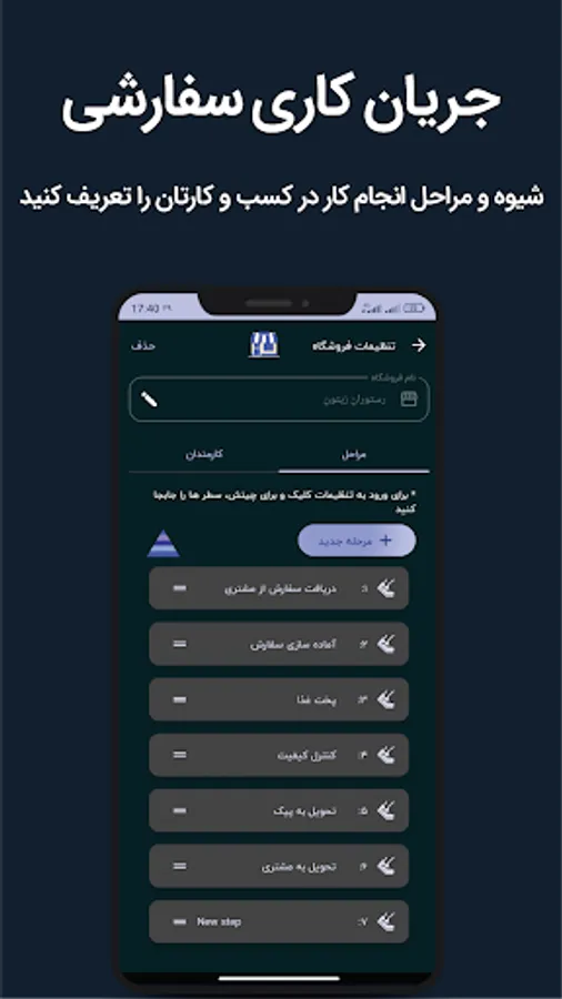 4. Define your own steps and procedures: Define the names and order of steps for doing things in your business for each store.