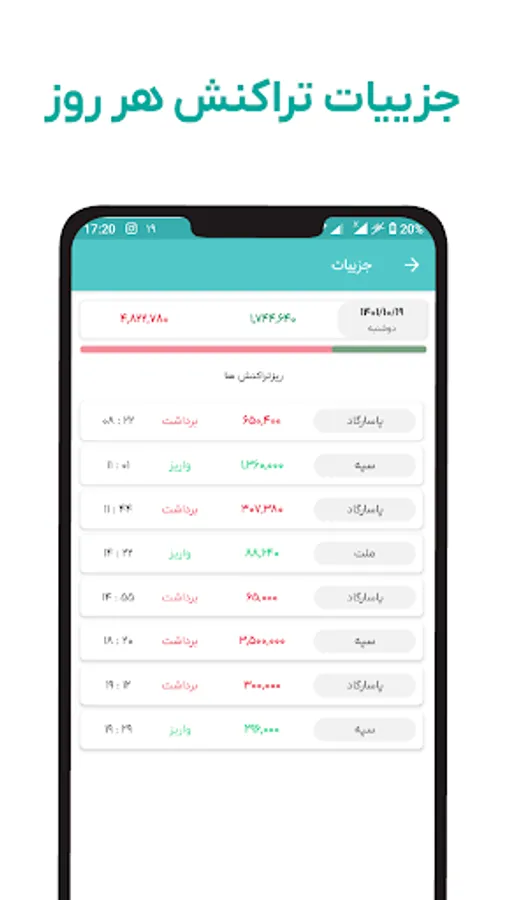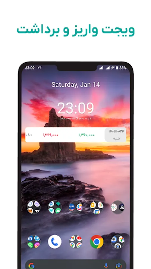 The SMS transaction application manages your incoming deposits and withdrawals, and with a widget on the phone screen, you can see the total amount of deposits and withdrawals in your account at a glance.