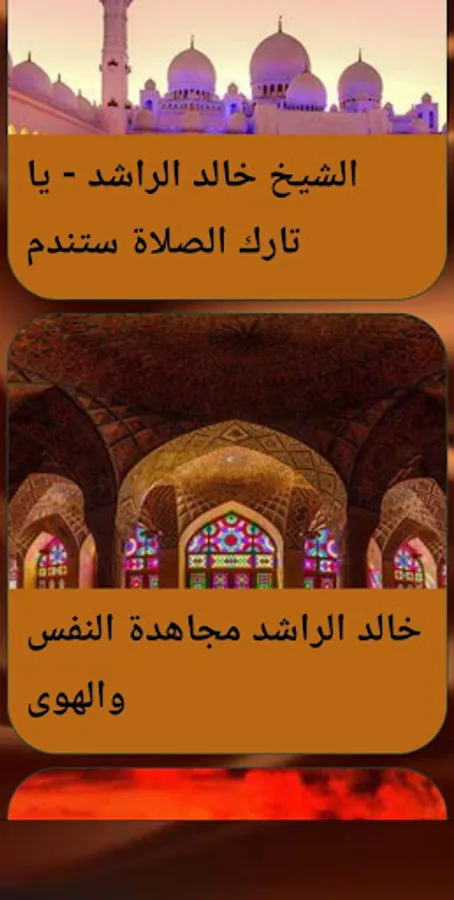 The sermons of Sheikh Khaled Al-Rashed without the net allow you through your mobile phone or tablet with ease and ease. The Khaled Al-Rashed application without the Internet is distinguished by high quality, as it is freely available on the store for Android phones, and we update it periodically.