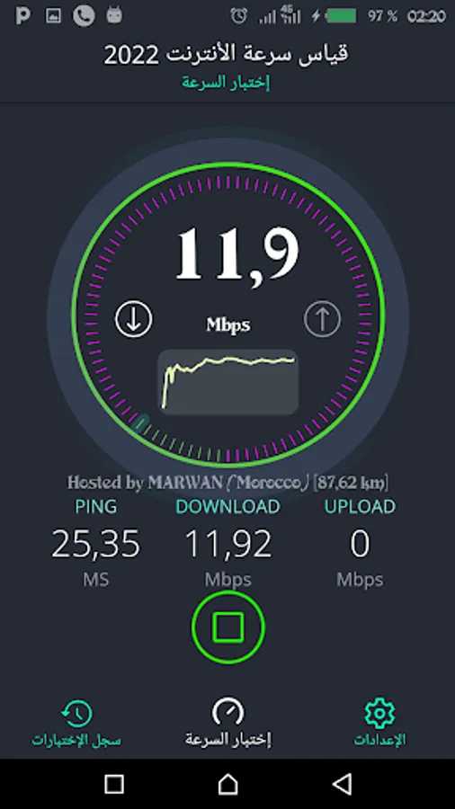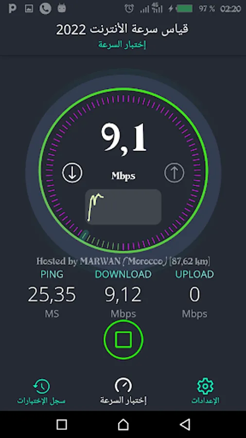 - Find out the download and upload speed, delay time and signal fluctuation.